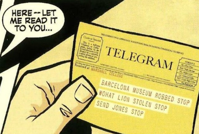 there's more! The telegram Marcus receives and reads to Indy